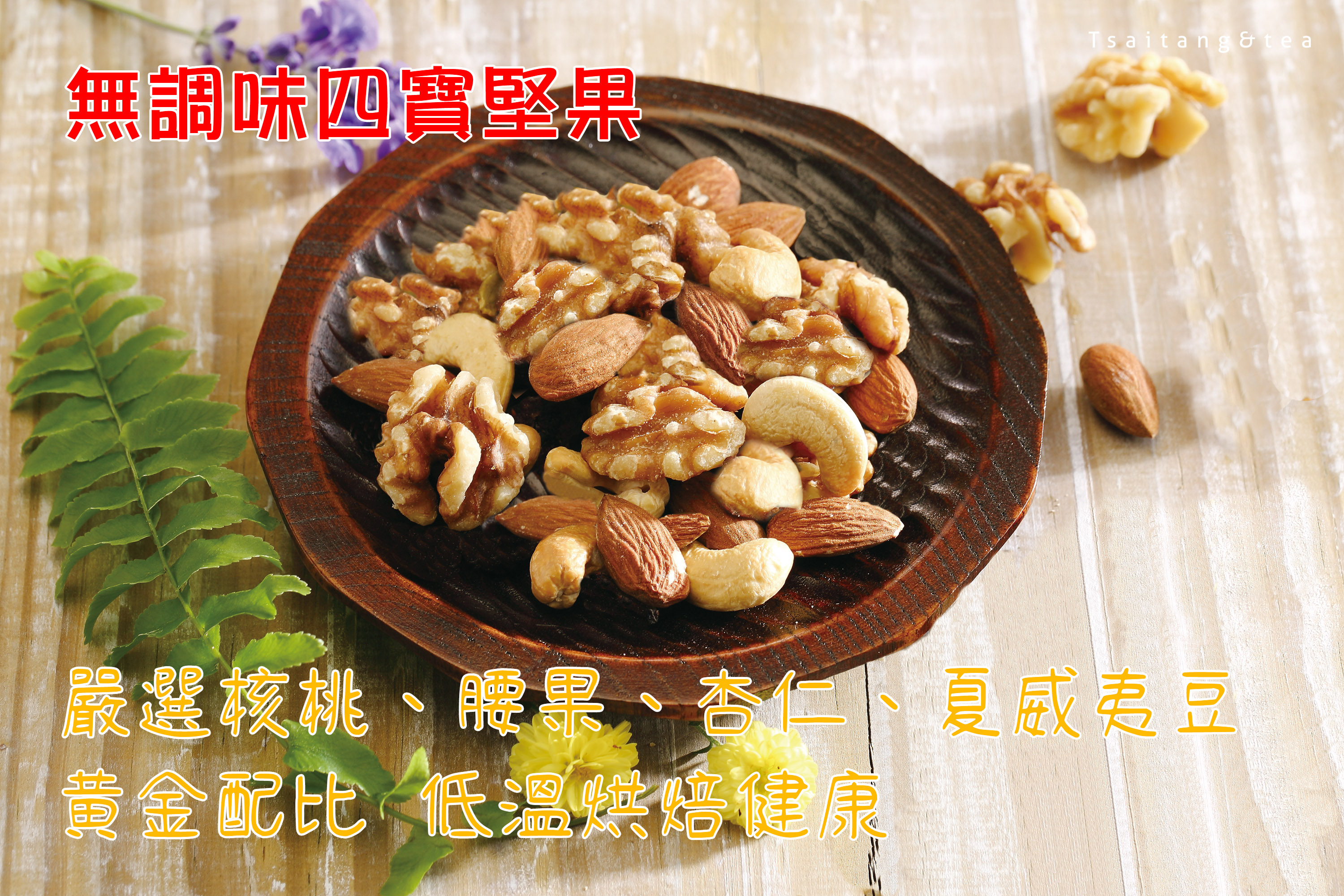 無調味四寶堅果 嚴選多種堅果類有核桃、腰果、杏仁、夏威夷豆等黃金配比,種類均富,低溫烘焙健康自然。 類別:全素 成份:杏仁果、核桃、夏威夷豆、腰果 規格:每包 250 公克(夾鍊立袋) 產地:美國 保存方式:常溫(25℃以下)陰涼通風處陰涼通風處 保存期限:90天(請密封保存) (有效日期只適用於未拆封的商品,拆封後請立即食用) 包裝方式如下: