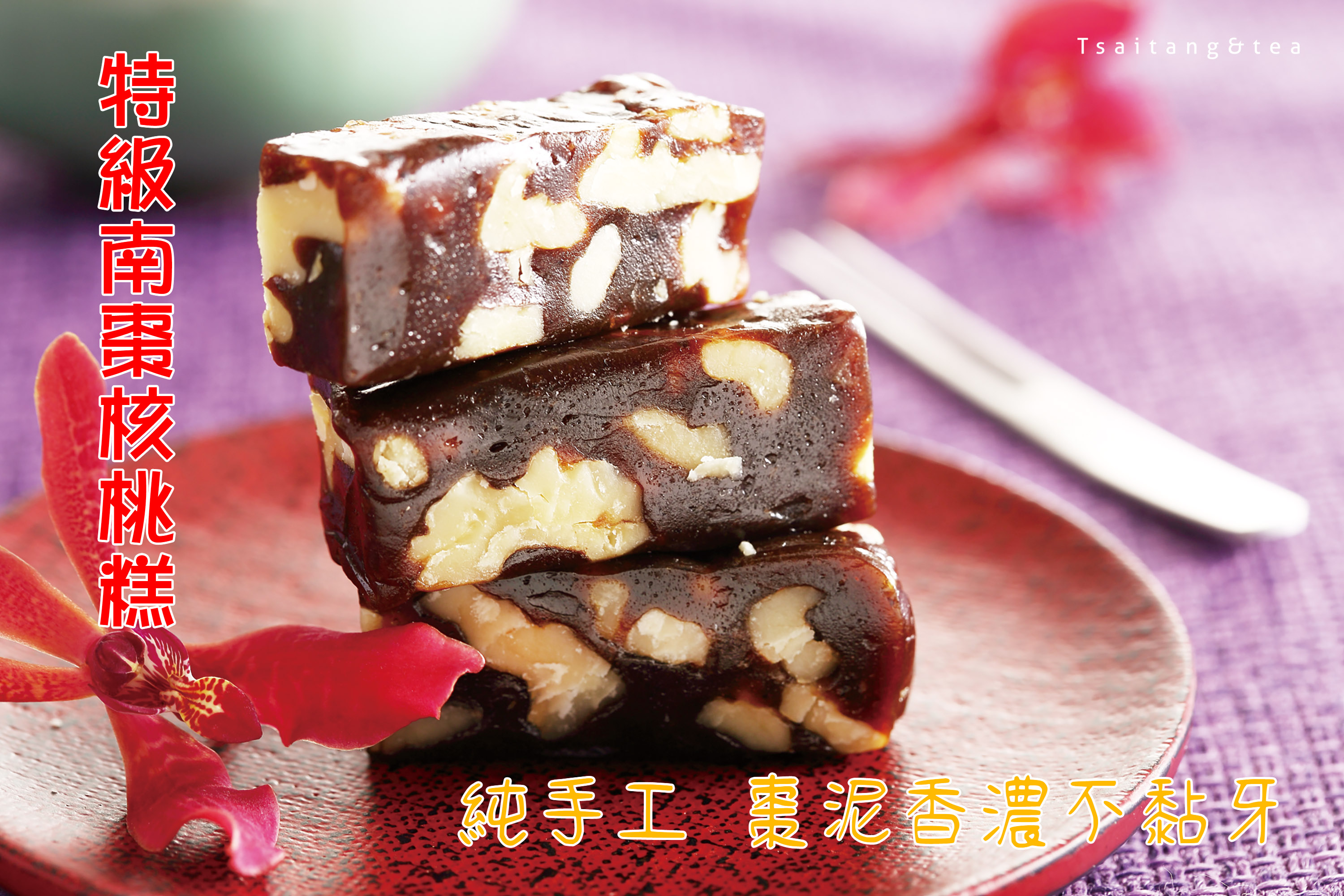 特級南棗核桃糕 特選今年當季黑棗、核桃其油脂新鮮飽滿,配合豆沙、砂糖等經4-5小時熬煮,口感鬆軟,堅果香味綿延。 類別:全素 成份:黑棗、核桃、植物油、砂糖、水飴、麥芽 規格:每包 300 公克(夾鍊立袋) 產地:台灣 保存方式:常溫(25℃以下)陰涼通風處陰涼通風處 保存期限:60天(請密封保存) (有效日期只適用於未拆封的商品,拆封後請立即食用) 包裝方式如下: